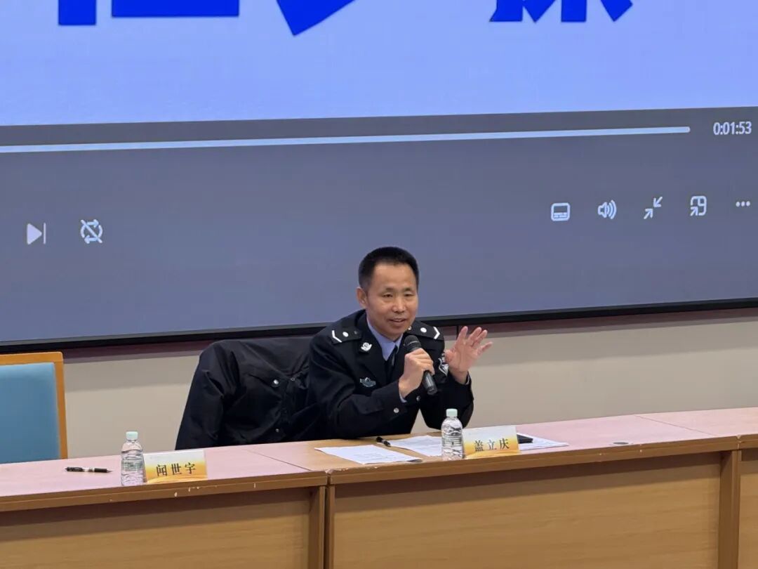 讲座中,盖立庆紧扣校园安全实际,围绕消防安全、交通安全、防诈安全三大核心内容,通过视频演示、典型案例、以案释法等形式进行系统讲解。在消防安全方面,结合专题视频直观演示火灾逃生要点,普及自救互救技能;在交通安全方面,以校园及周边真实事故为警示,引导学生遵守交通规则,摒弃侥幸心理;在防诈安全方面,重点剖析刷单返利、虚假购物退款、冒充熟人借钱等高发诈骗手段,揭露诈骗分子作案套路,提醒同学们牢记“不轻信、不透露、不转账”,守好自身财产安全。